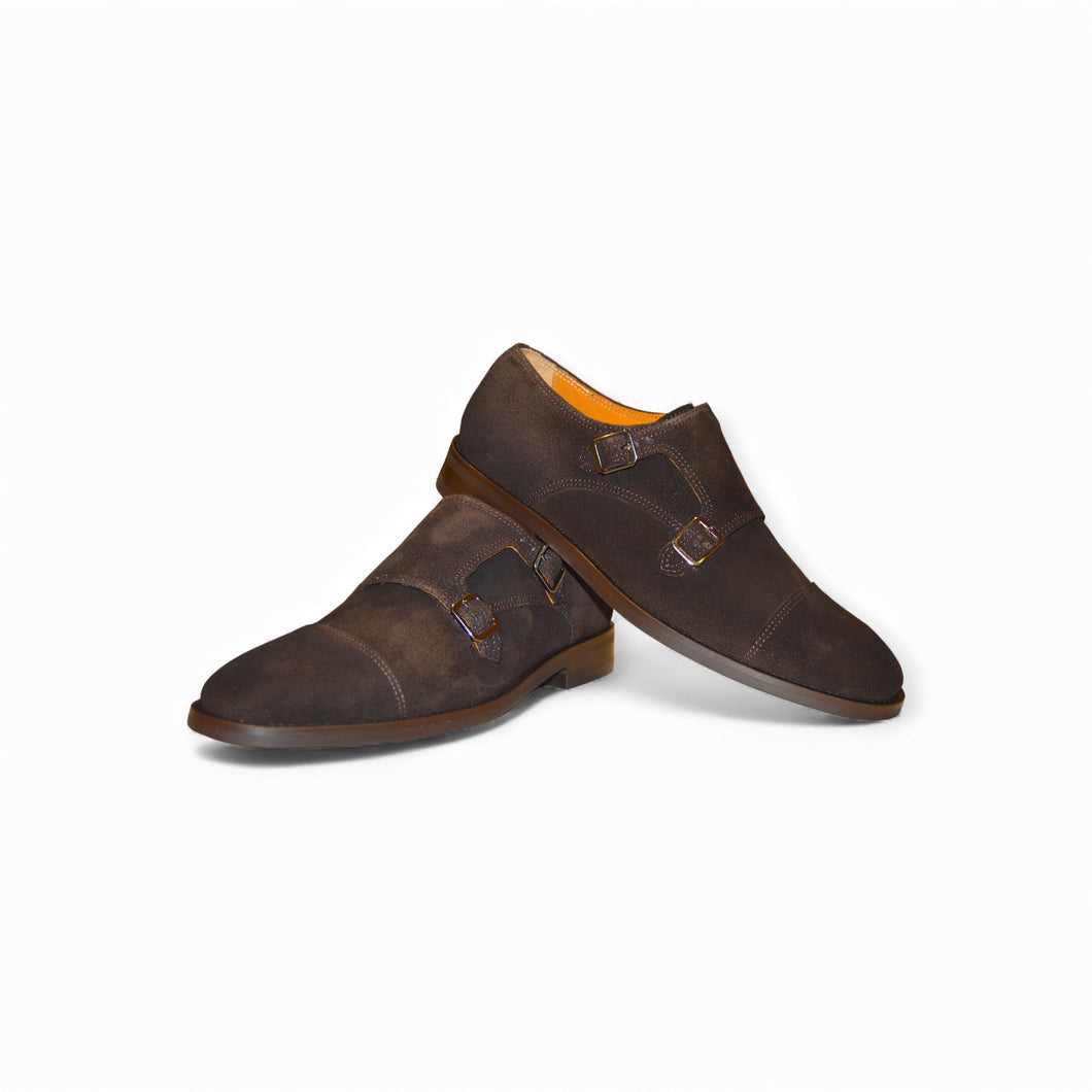 Suede dark brown Double Monk Strap shoes.
